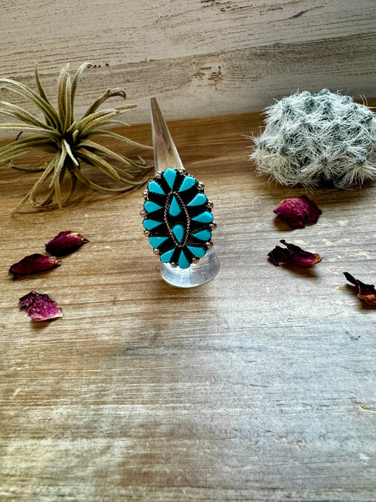 Oval Ring- Size 8- Kingman turquoise ring and sterling silver