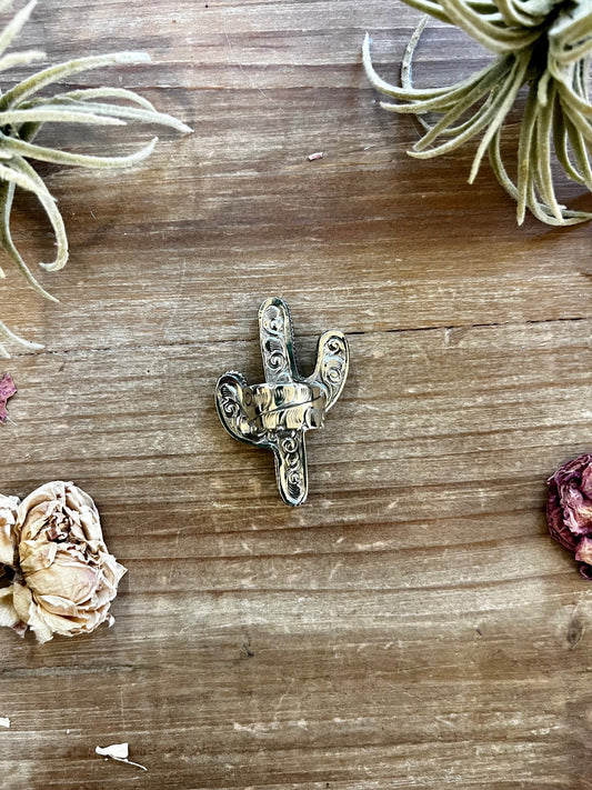 Blue cactus with flower with turquoise rings