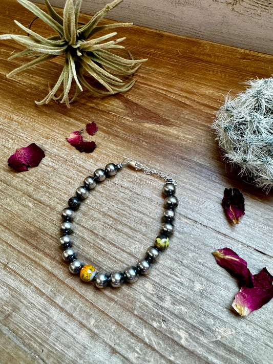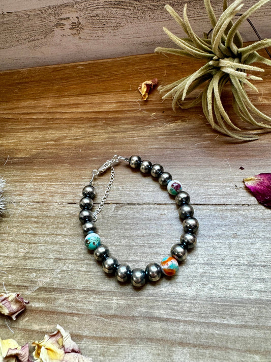 8 mm Sterling Silver Pearls bracelet with Mohave beads