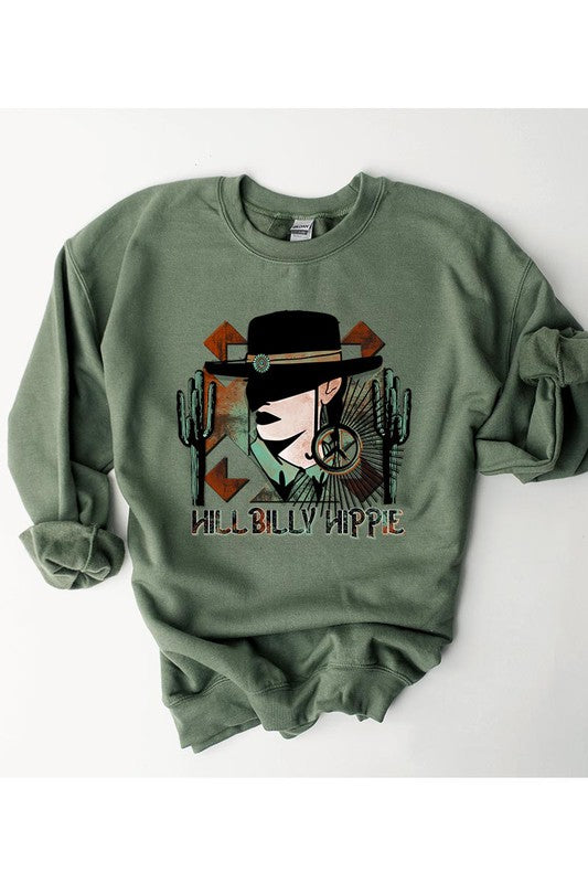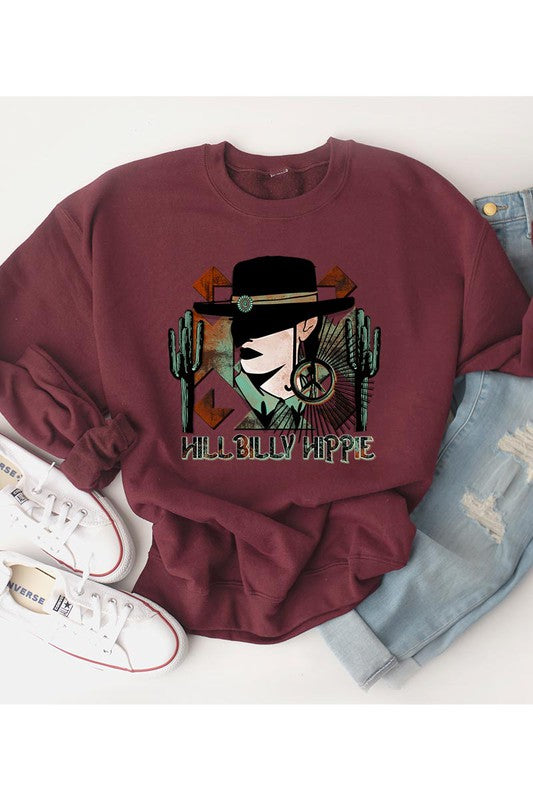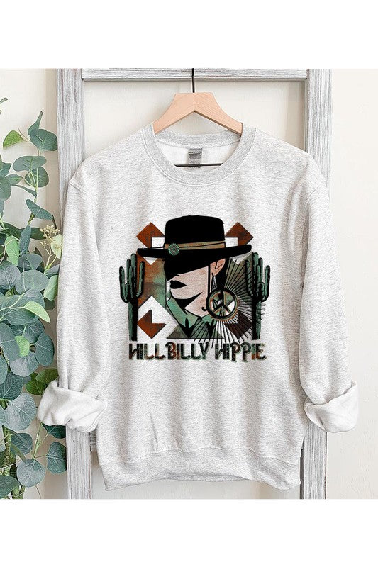 HILLBILLY HIPPIE,WESTERN,COWGIRL,DESERT,CACTUS,PEACE UNISEX FLEECE SWEATSHIRT