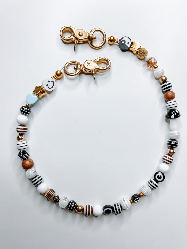 Keep your phone protected and adorned with this adorable handmade charm/wristlet.